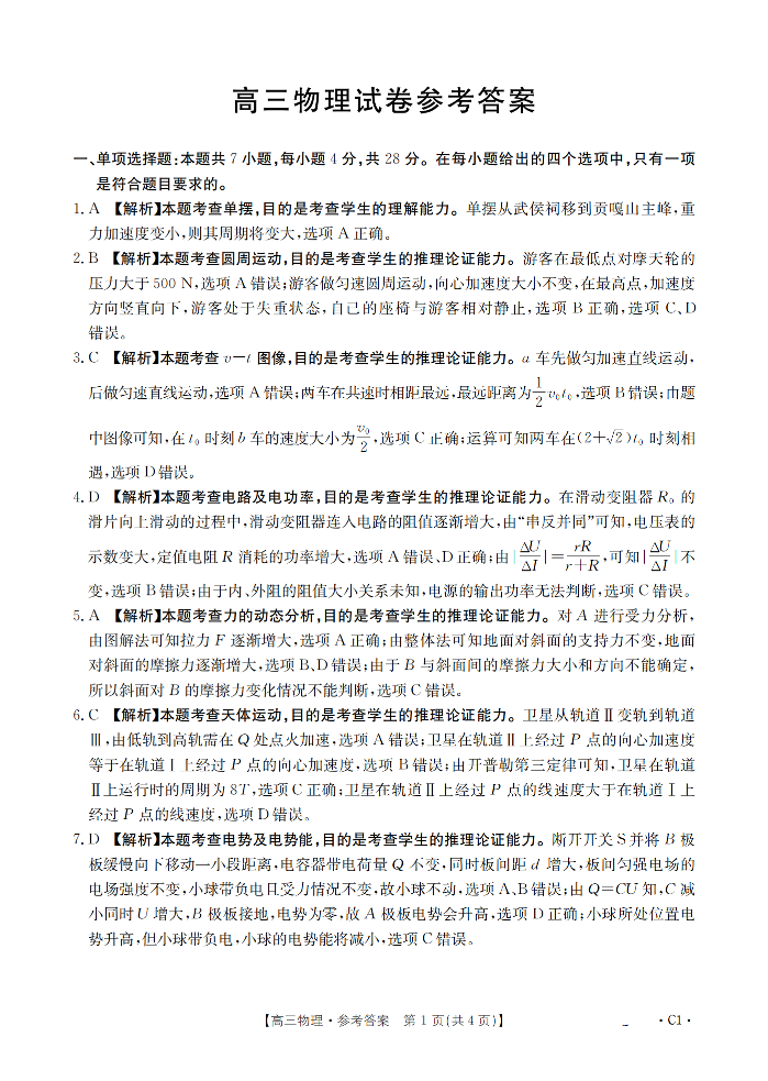 四川省2026届高三上学期12月联考 物理答案.pdf