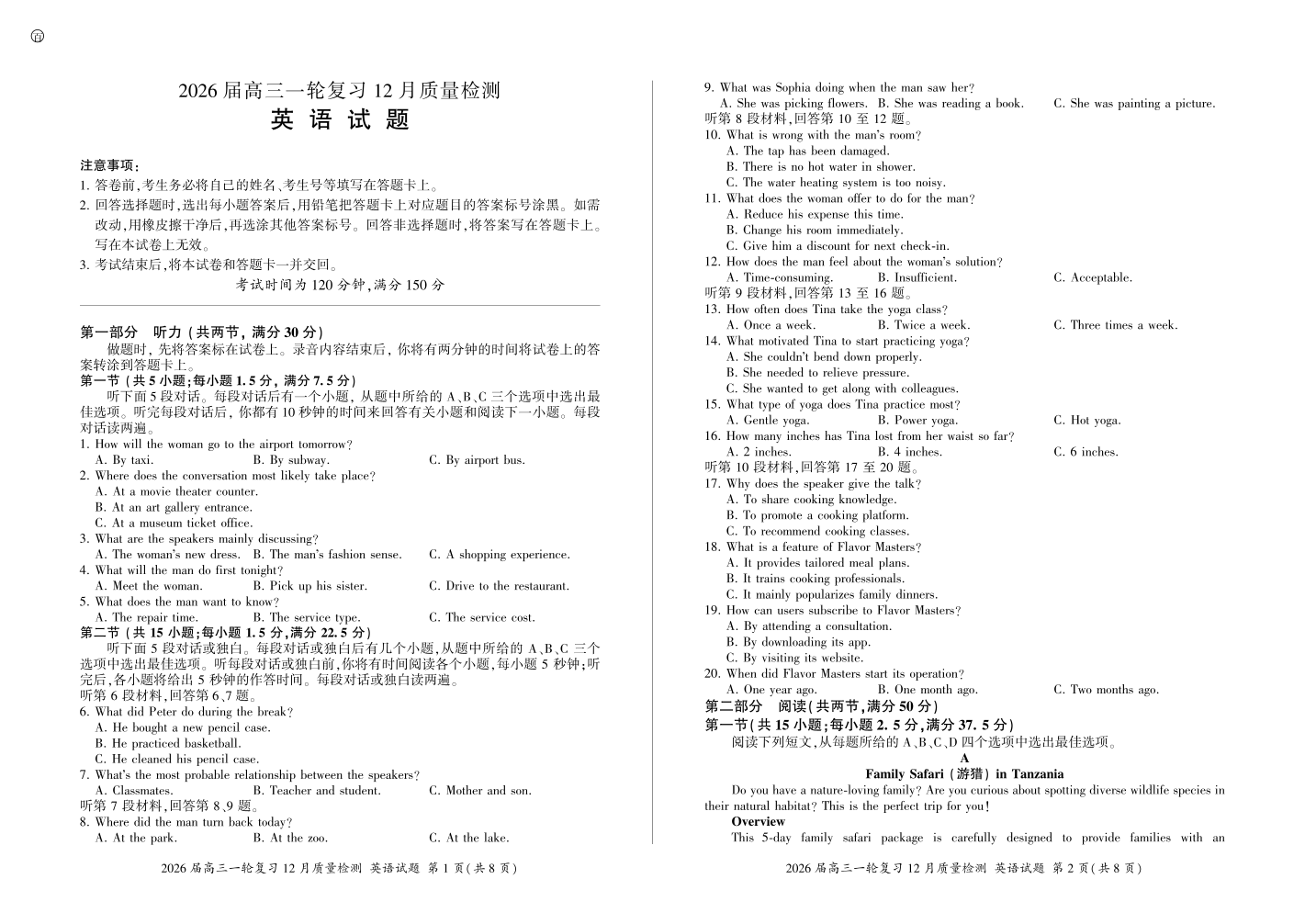 四川省百师联盟2026届高三一轮复习12月质量检测 英语.pdf