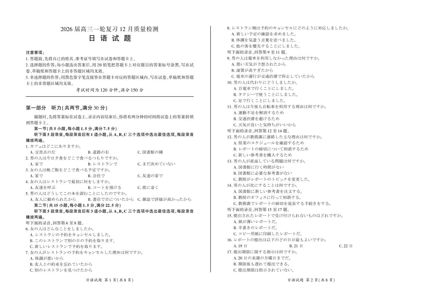 四川省百师联盟2026届高三一轮复习12月质量检测 日语.pdf