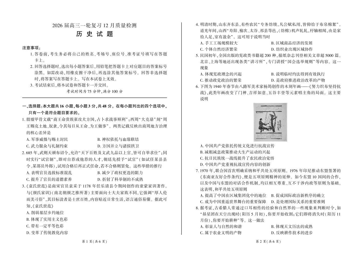 四川省百师联盟2026届高三一轮复习12月质量检测 历史.pdf