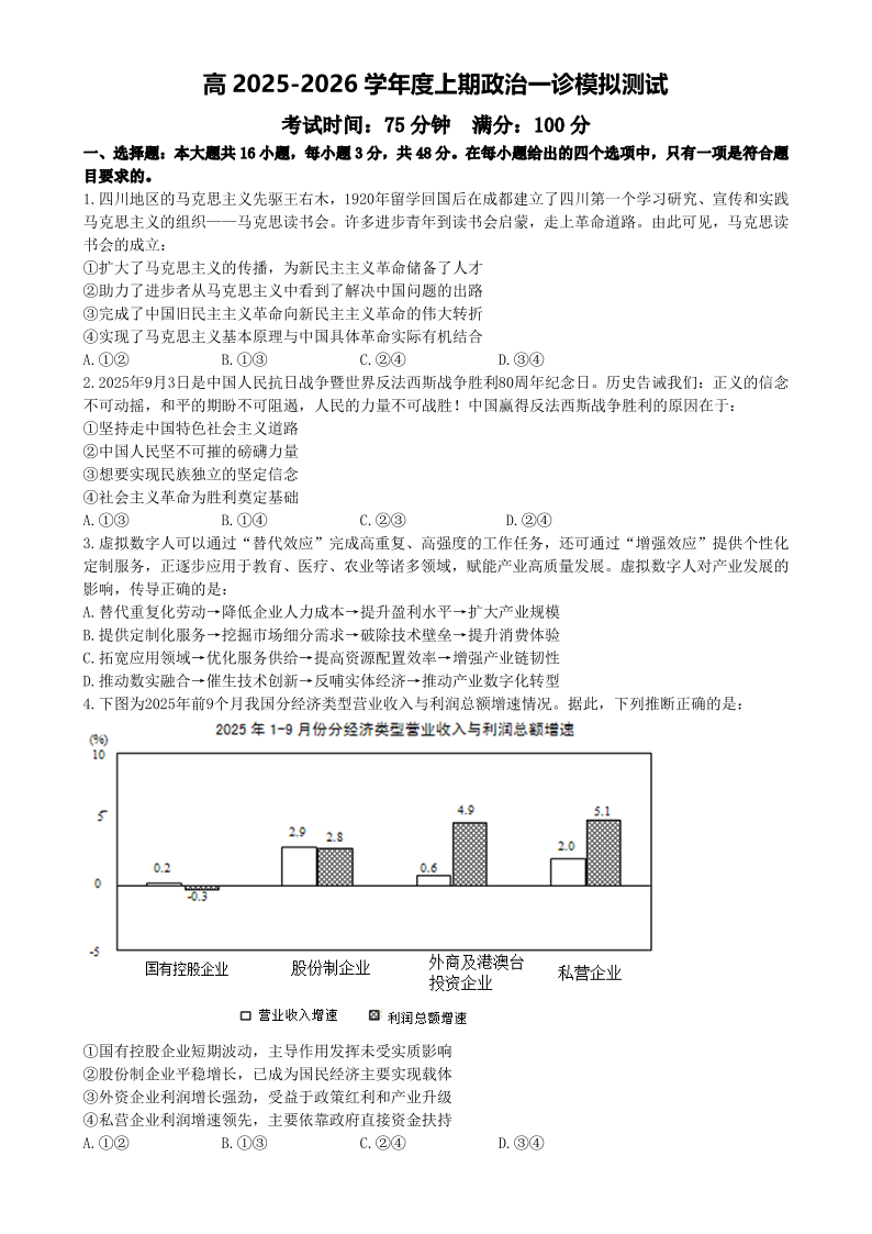 成都市第七中学2025-2026学年度上期高2026届一诊模拟 政治.pdf