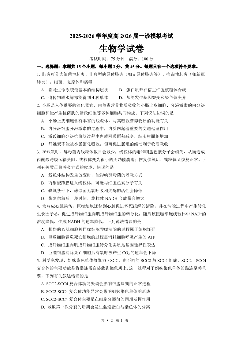 成都市第七中学2025-2026学年度上期高2026届一诊模拟 生物.pdf