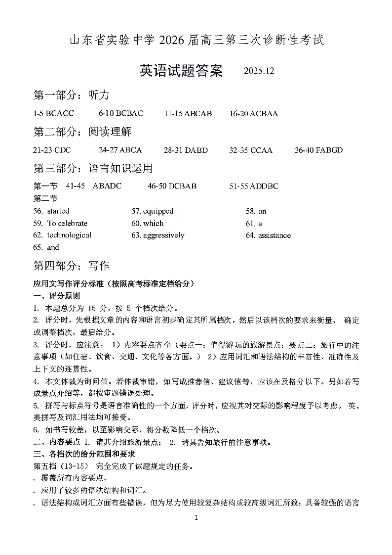 山东省实验中学2026届高三第三次诊断性考试 英语答案.pdf