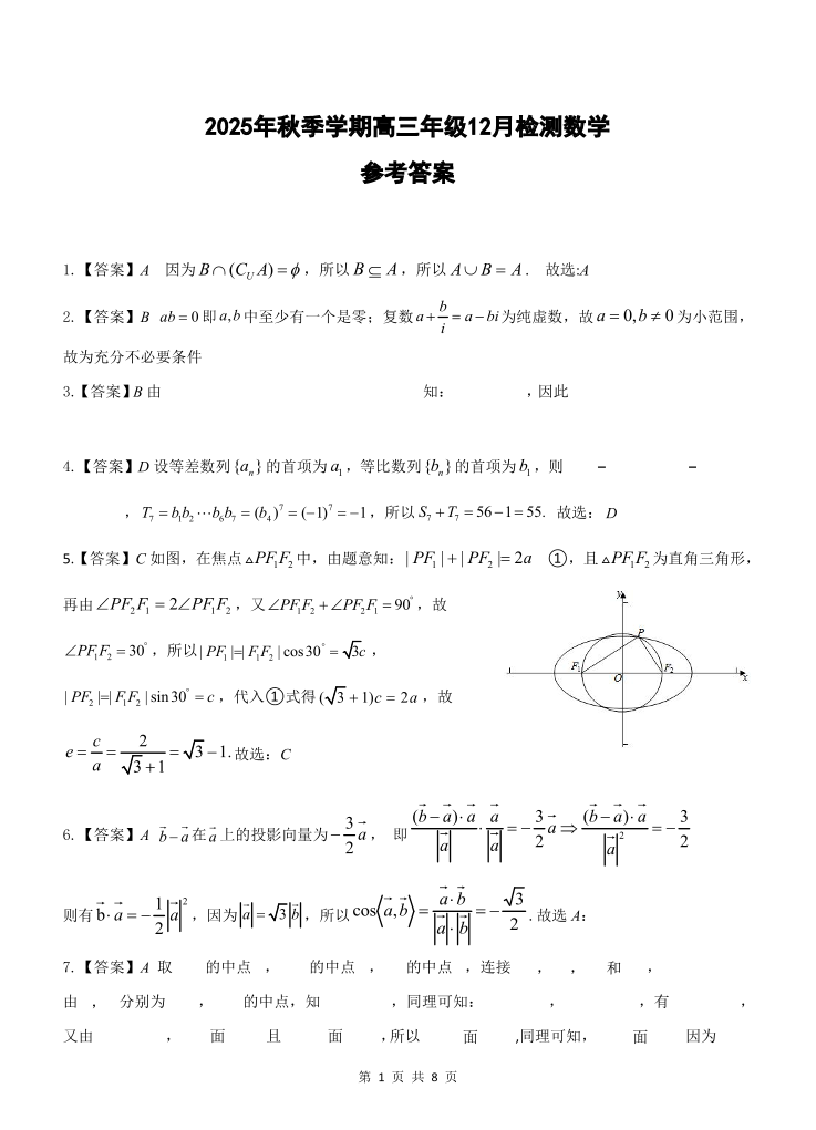 2025年秋季学期高三年级12月质量检測 数学答案.pdf