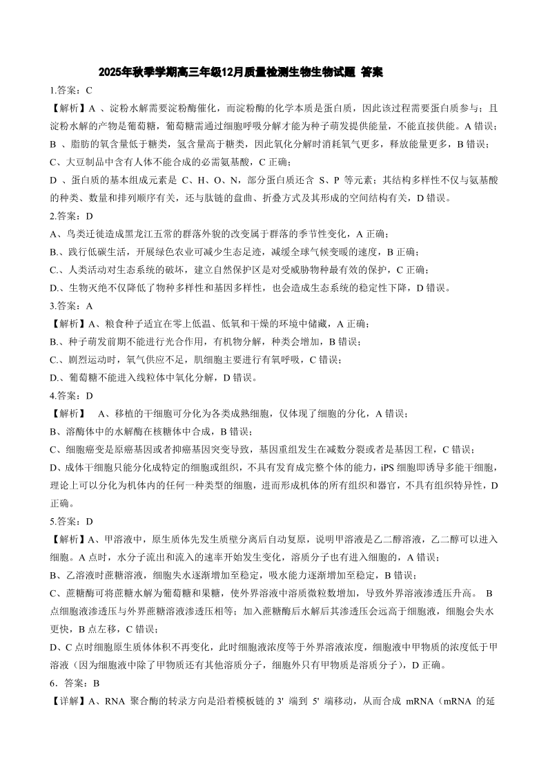 2025年秋季学期高三年级12月质量检測 生物答案.pdf