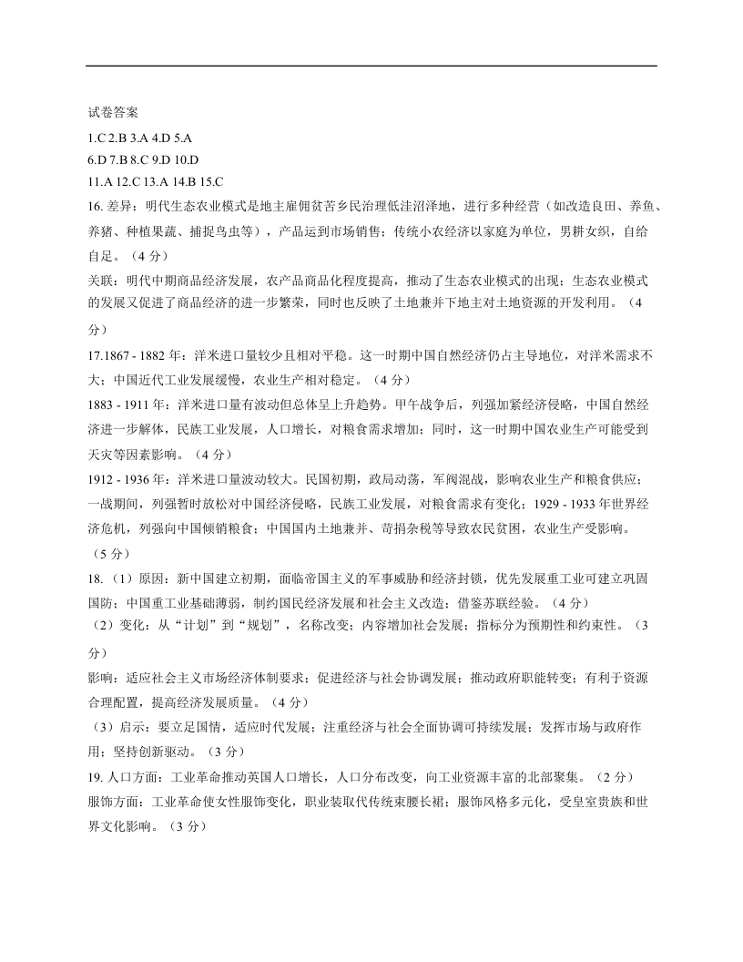 山东省实验中学2026届高三第三次诊断性考试 历史答案.docx