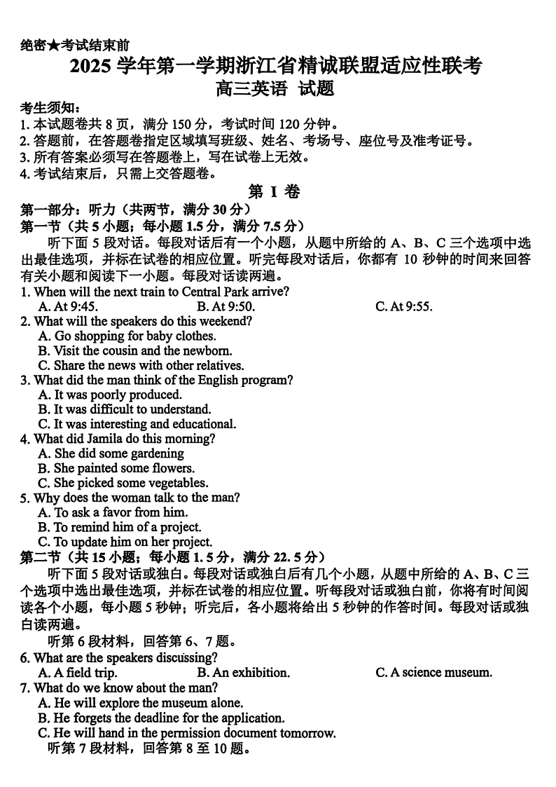 浙江精诚联盟2025学年第一学期高三12月适应性联考 英语.pdf