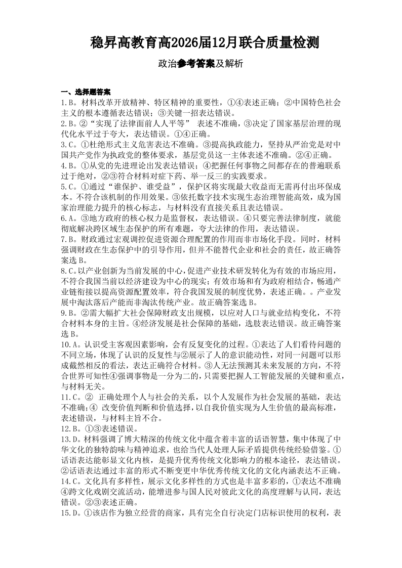 稳昇高教育2025-2026学年(上)高2026届12月联考 政治答案.pdf
