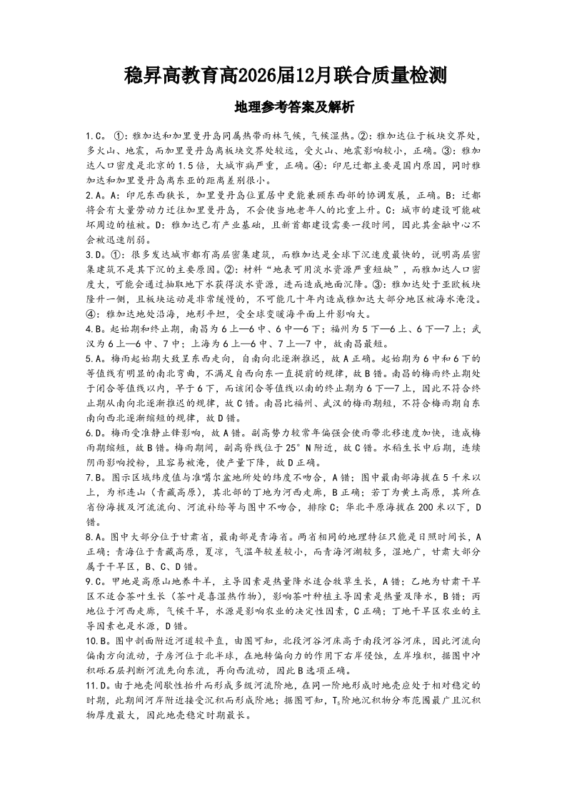 稳昇高教育2025-2026学年(上)高2026届12月联考 地理答案.pdf