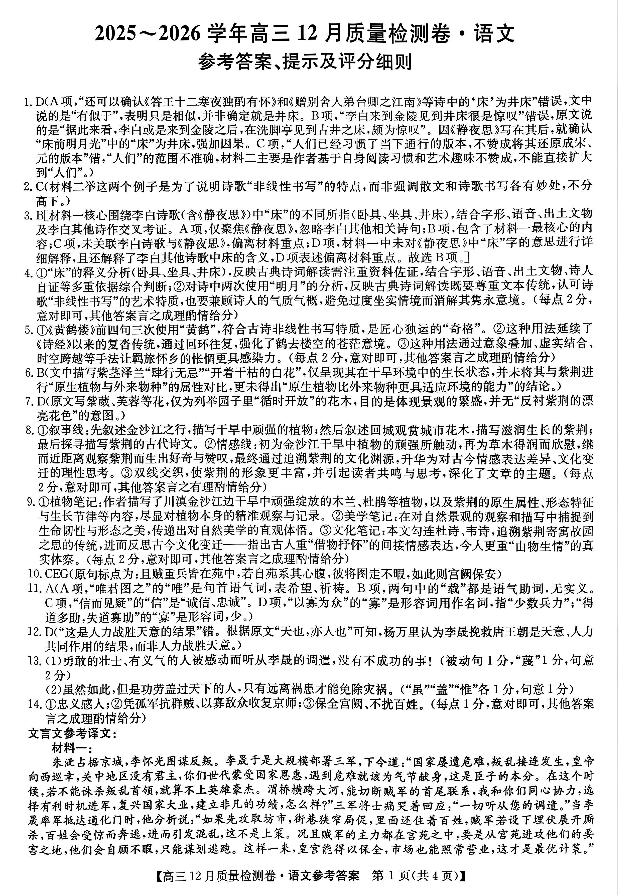 山西卓越联盟2025-2026学年高三12月质量检测卷 语文答案.pdf