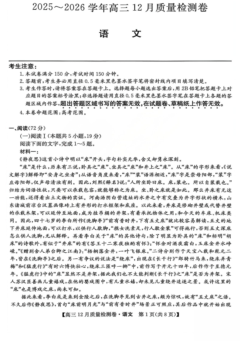 山西卓越联盟2025-2026学年高三12月质量检测卷 语文.pdf