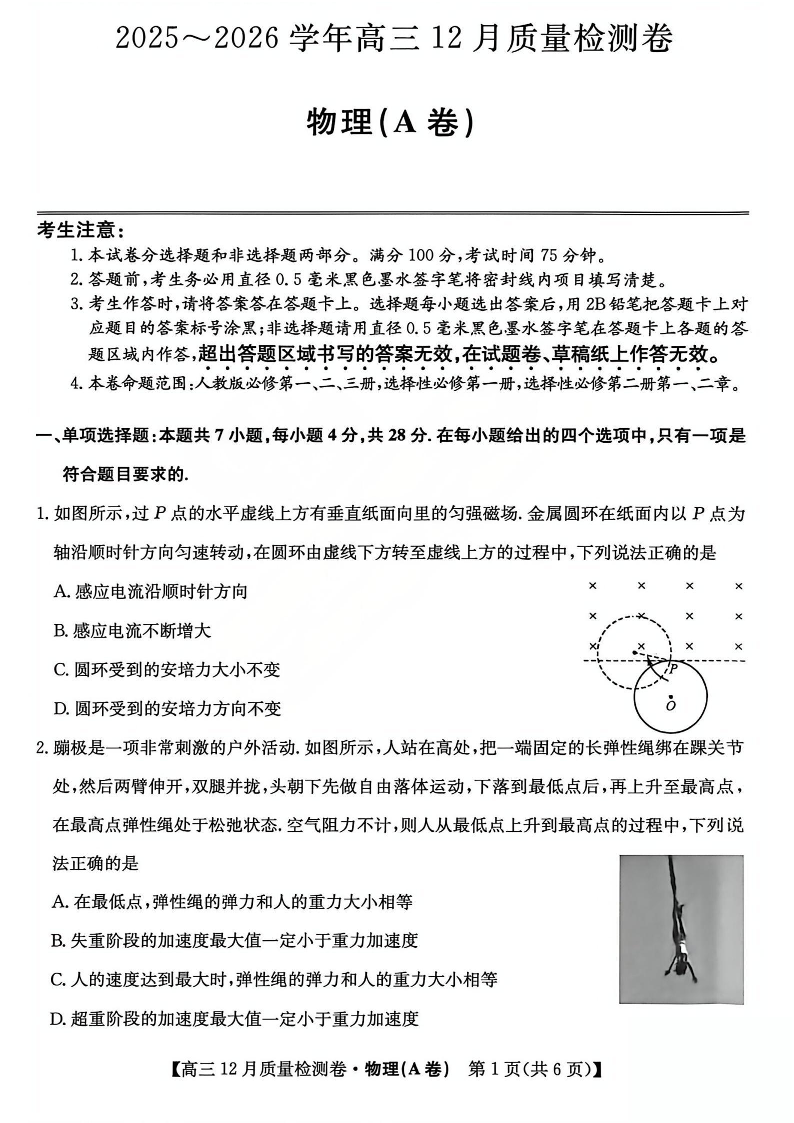 山西卓越联盟2025-2026学年高三12月质量检测卷 物理.pdf