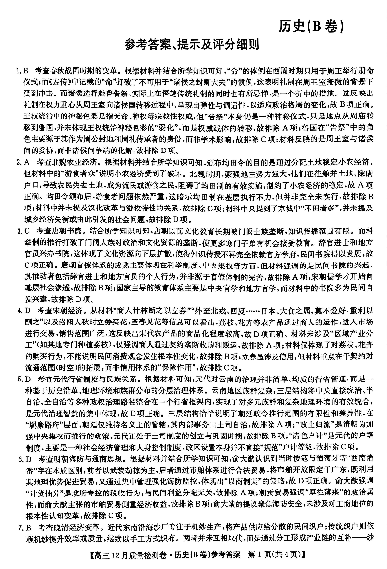 山西卓越联盟2025-2026学年高三12月质量检测卷 历史答案.pdf