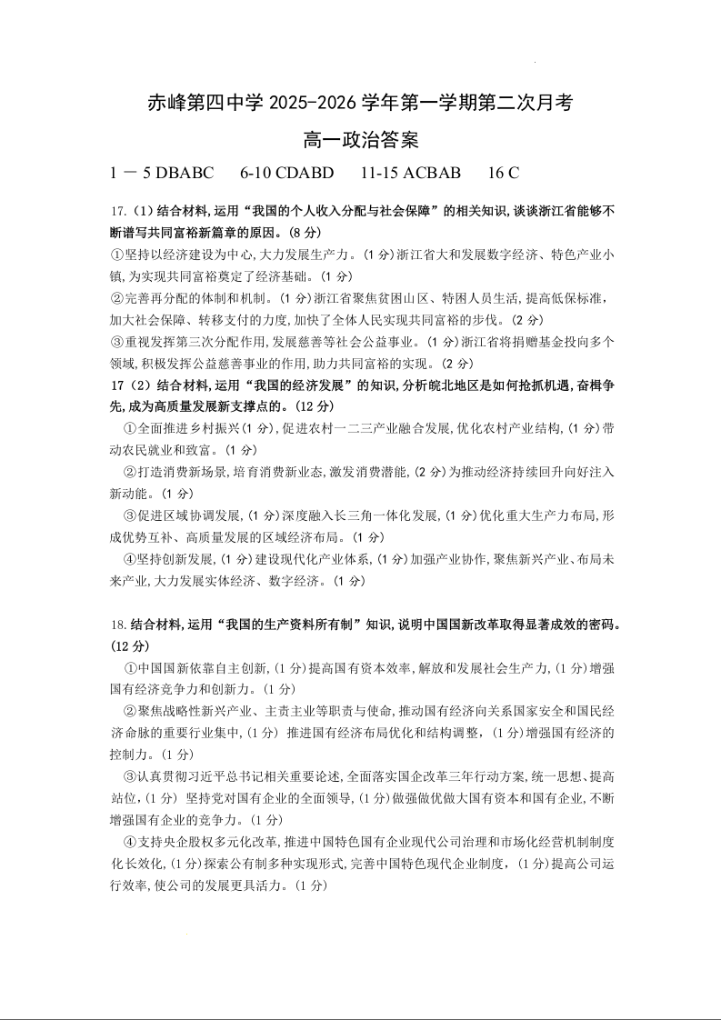 内蒙古自治区赤峰第四中学2025-2026学年高一上学期12月月考 政治答案.docx