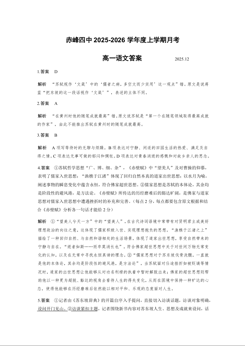 内蒙古自治区赤峰第四中学2025-2026学年高一上学期12月月考 语文答案.docx