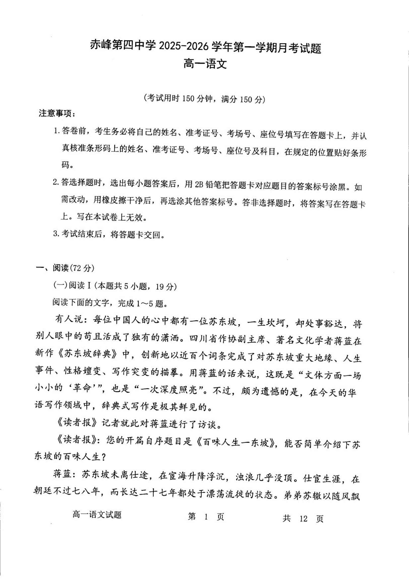 内蒙古自治区赤峰第四中学2025-2026学年高一上学期12月月考 语文.pdf