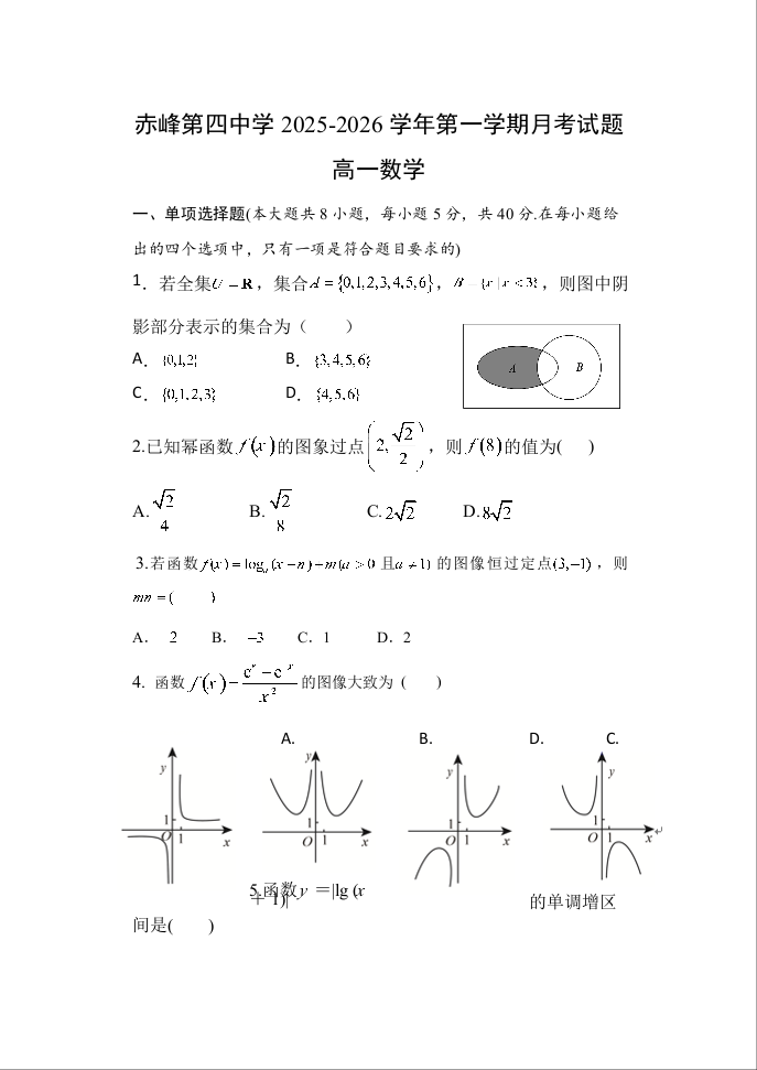 内蒙古自治区赤峰第四中学2025-2026学年高一上学期12月月考 数学答案.docx