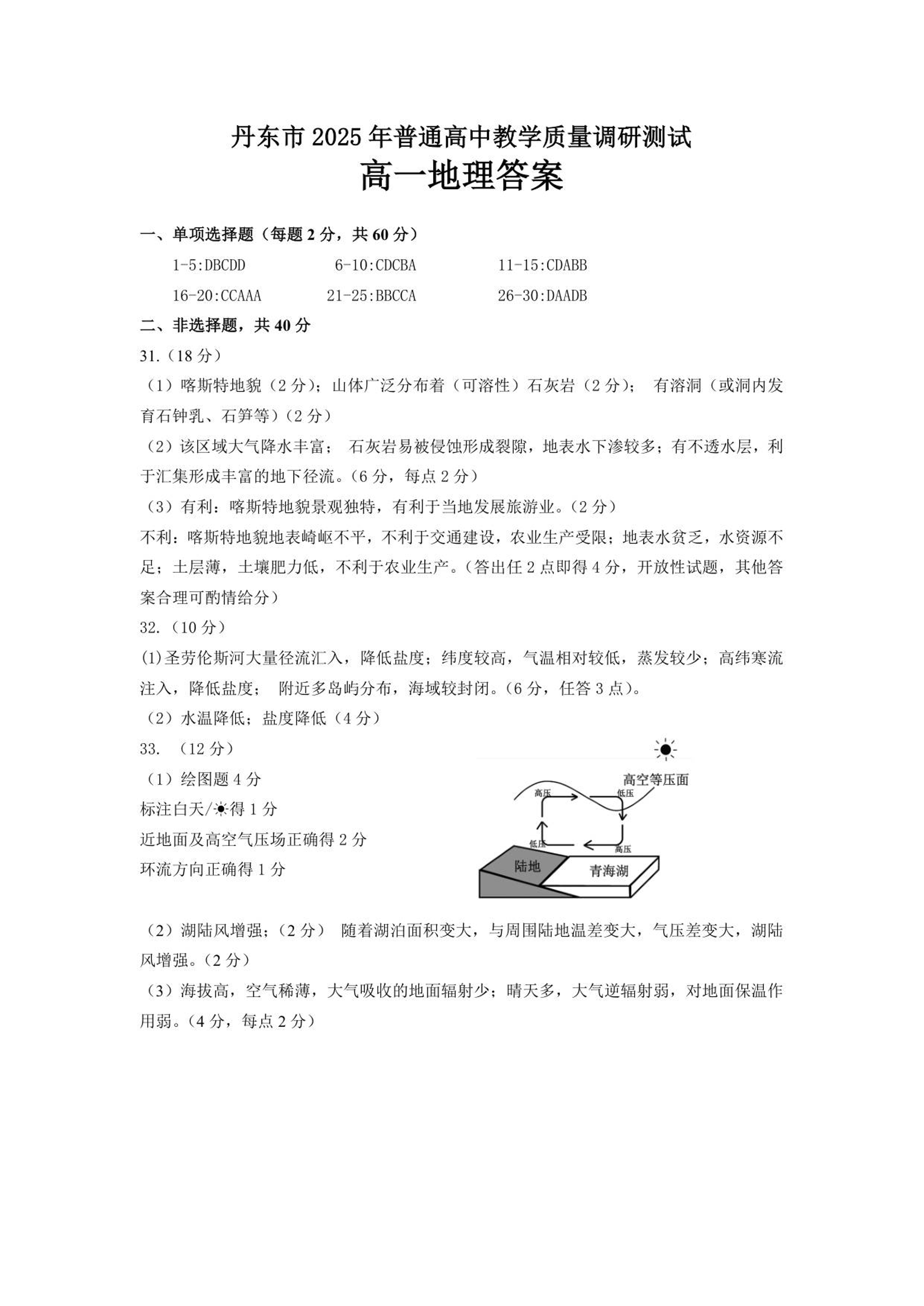 辽宁省丹东市2025-2026学年高一上学期教学质量调研测试 地理答案.pdf