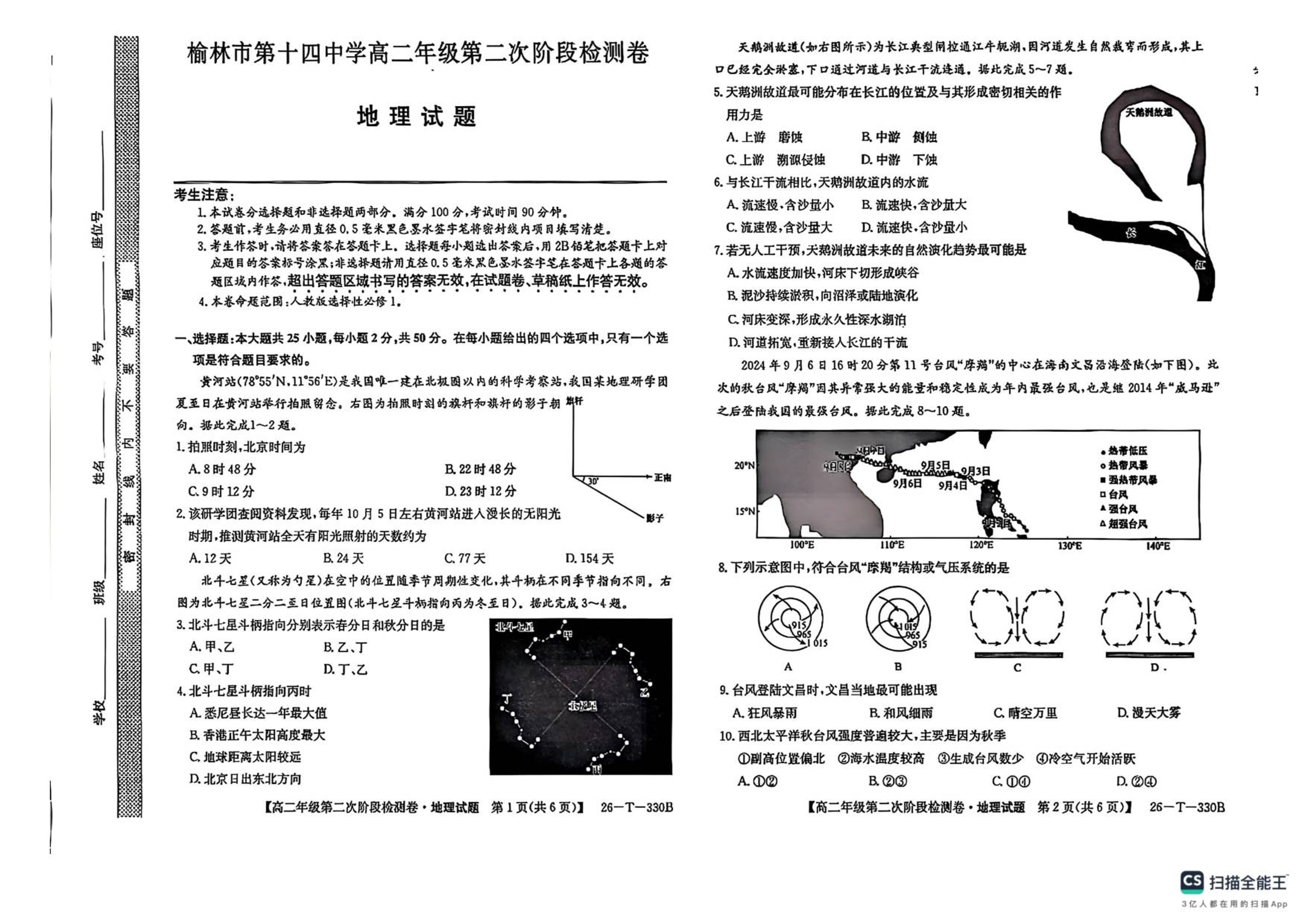 陕西省榆林市榆阳区2025-2026学年高二上学期12月期中 地理试题(含答案).pdf
