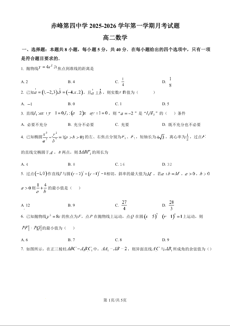 内蒙古自治区赤峰第四中学2025-2026学年高二上学期12月月考 数学.docx