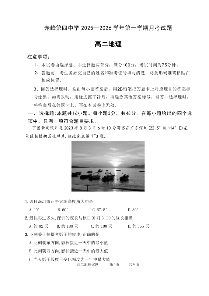 内蒙古自治区赤峰第四中学2025-2026学年高二上学期12月月考 地理答案.docx