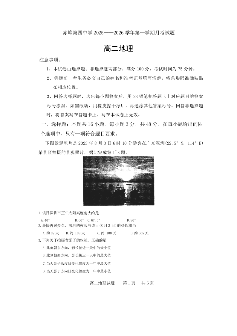内蒙古自治区赤峰第四中学2025-2026学年高二上学期12月月考 地理.docx