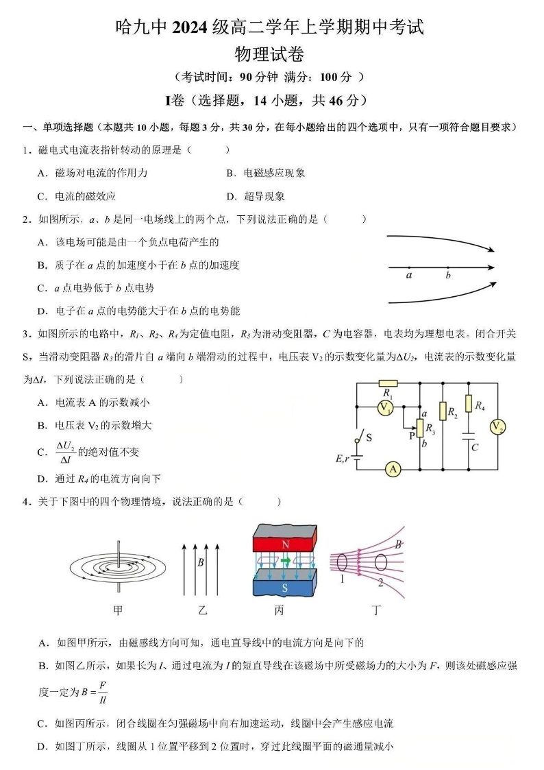 黑龙江省哈尔滨市第九中学2025-2026学年高二上学期期中考试 物理试题(含答案).pdf