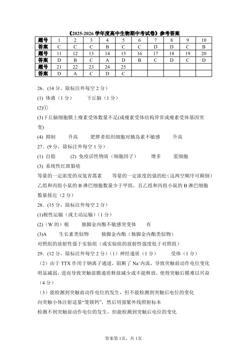 河南省实验中学2025-2026学年高二上学期期中考试 生物答案.pdf