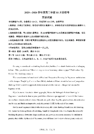 广东省清远市2025-2026学年高二上学期期中考试 英语试题(含答案).pdf