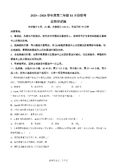 广东省清远市2025-2026学年高二上学期期中考试 生物试题(含答案).pdf