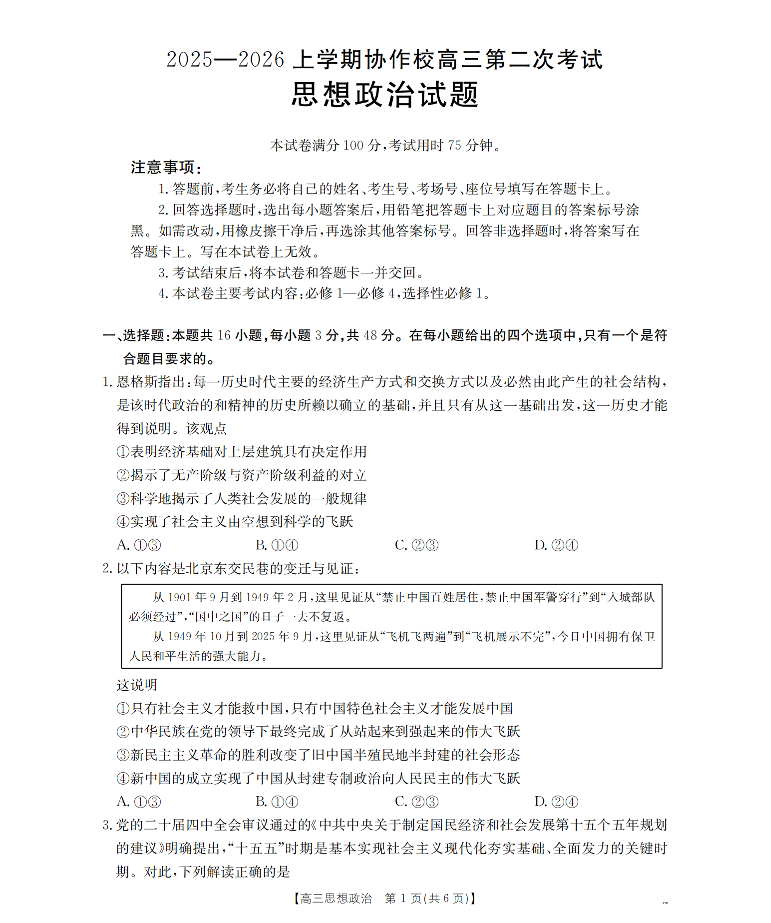 辽宁省葫芦岛市、县2026届高三上学期协作校第二次考试 政治.pdf