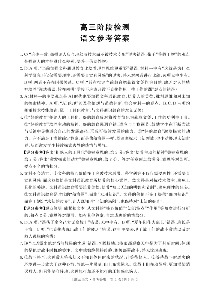甘肃省天水市2026届高三上学期11月联考 语文答案.pdf
