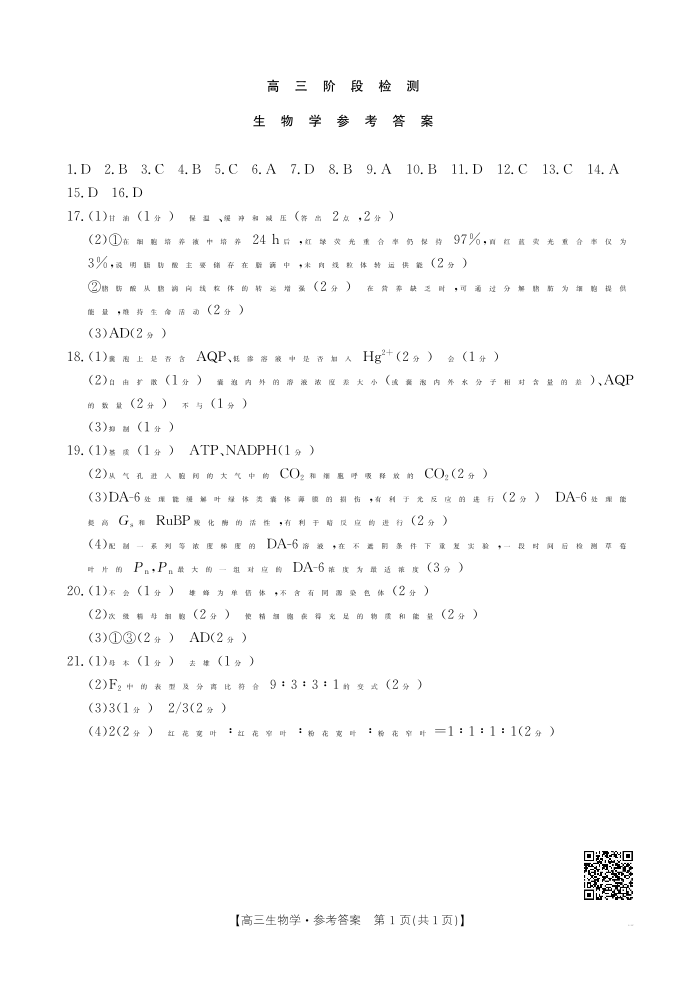 甘肃省天水市2026届高三上学期11月联考 生物答案.pdf