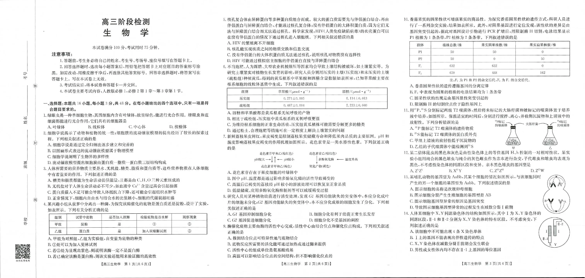 甘肃省天水市2026届高三上学期11月联考 生物.pdf