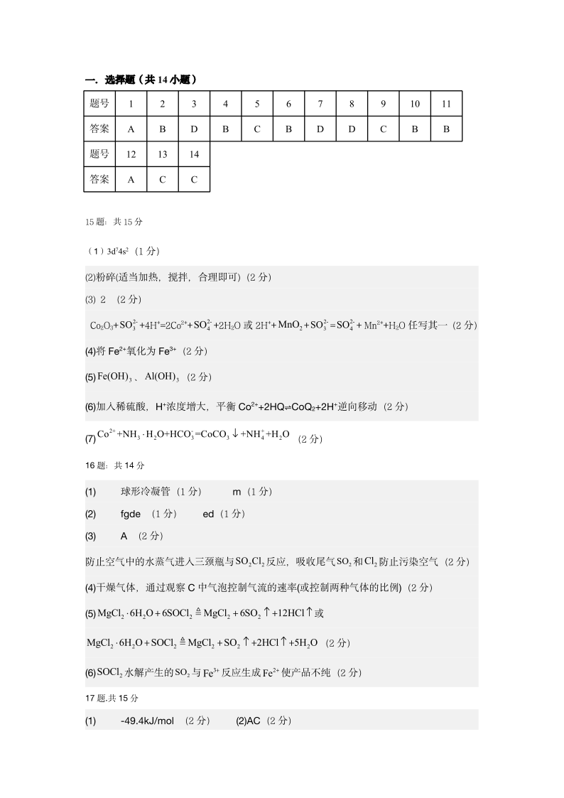 甘肃省天水市2026届高三上学期11月联考 化学答案.pdf