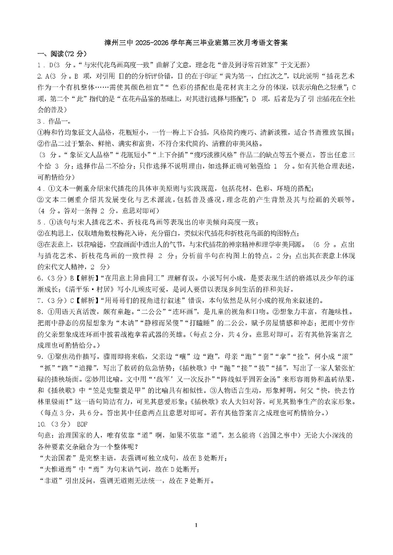 漳州三中2025-2026学年高三毕业班第三次月考 语文答案.pdf