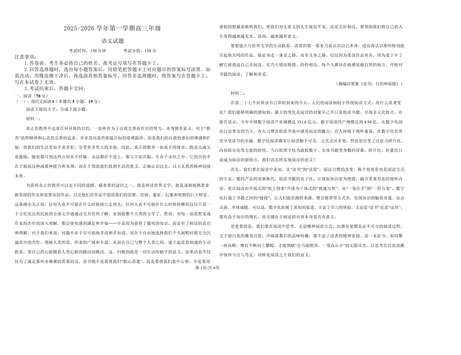 内蒙古自治区鄂尔多斯市第一中学2026届高三上学期12月月考 语文.pdf