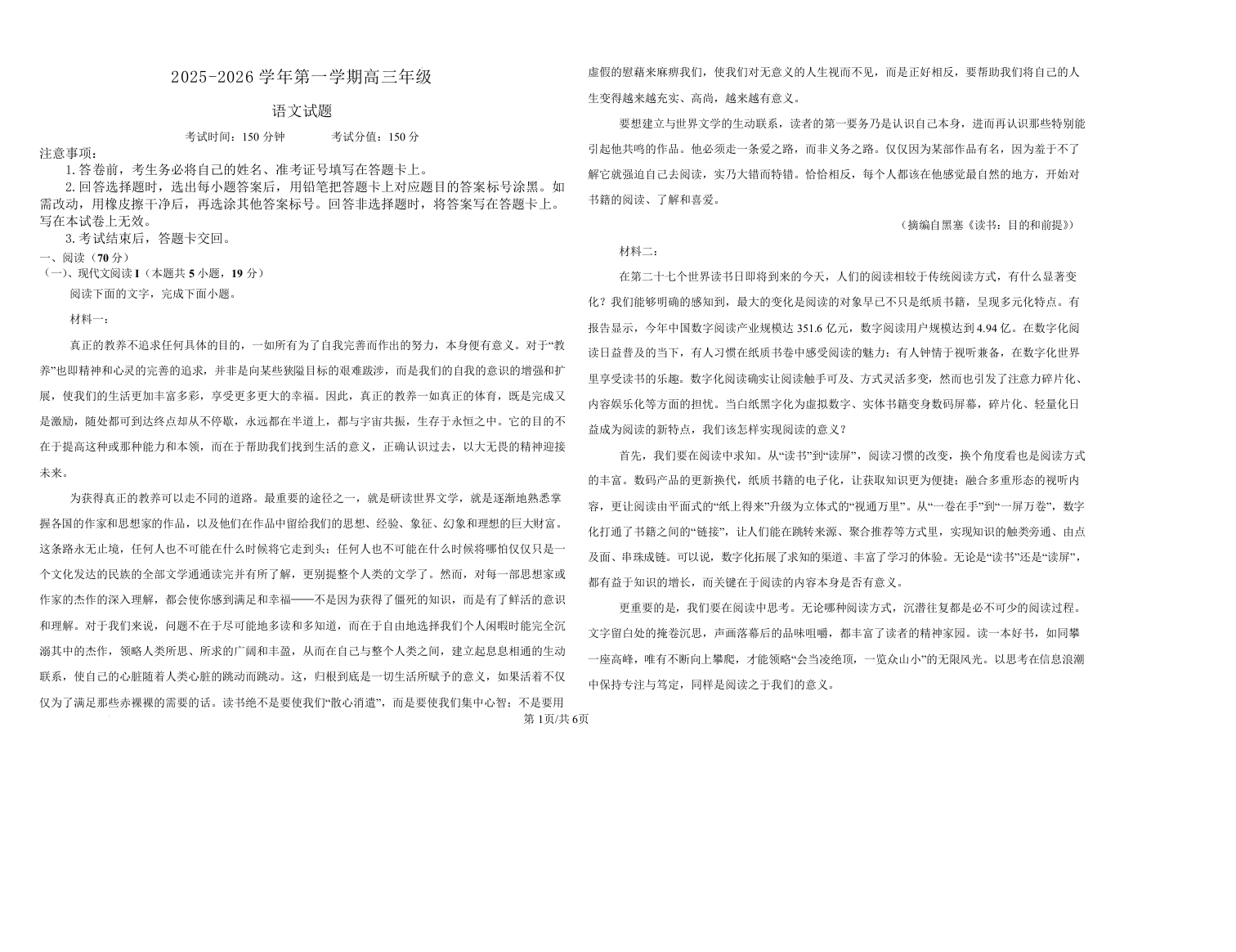 内蒙古自治区鄂尔多斯市第一中学2026届高三上学期12月月考 语文.docx