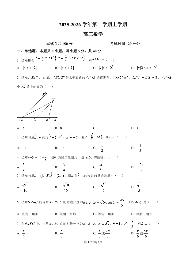 内蒙古自治区鄂尔多斯市第一中学2026届高三上学期12月月考 数学.docx
