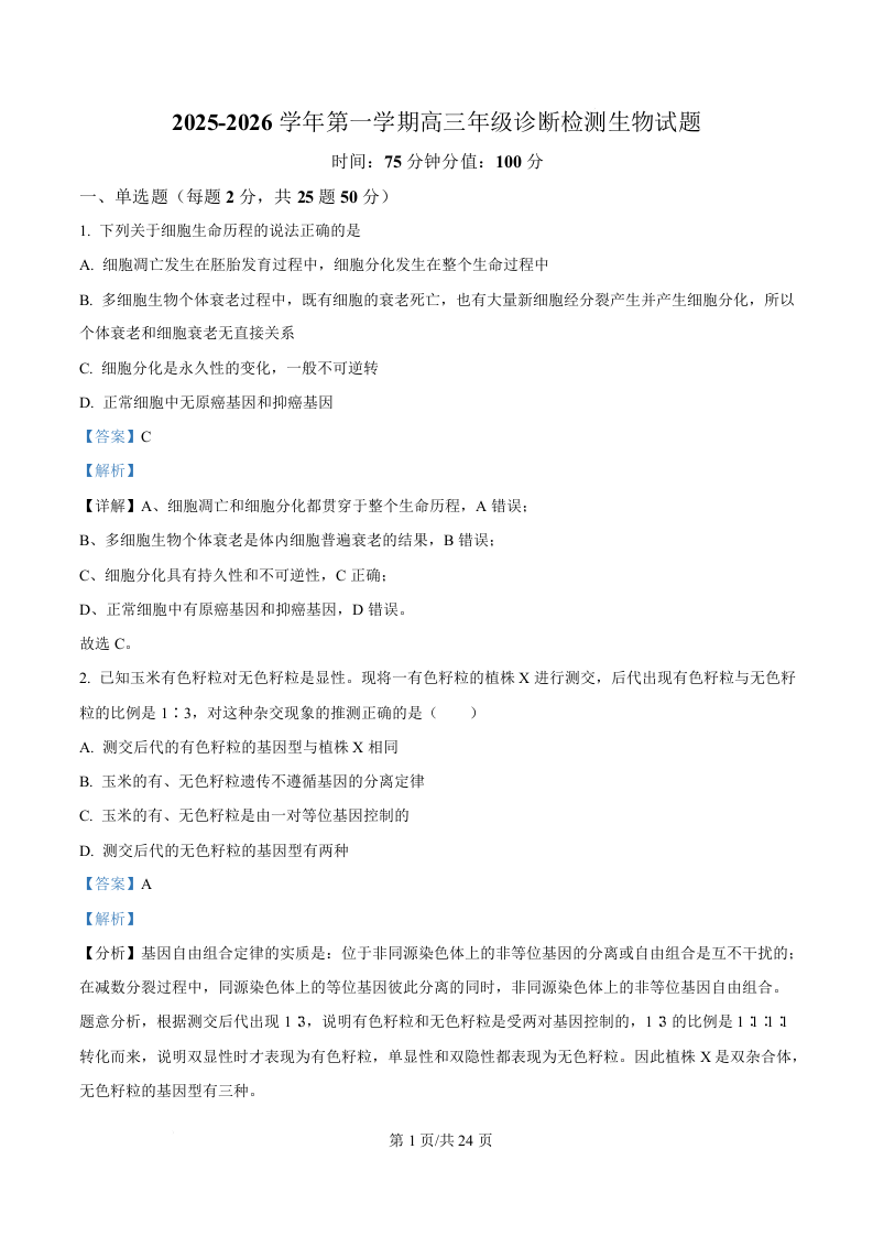 内蒙古自治区鄂尔多斯市第一中学2026届高三上学期12月月考 生物答案.docx