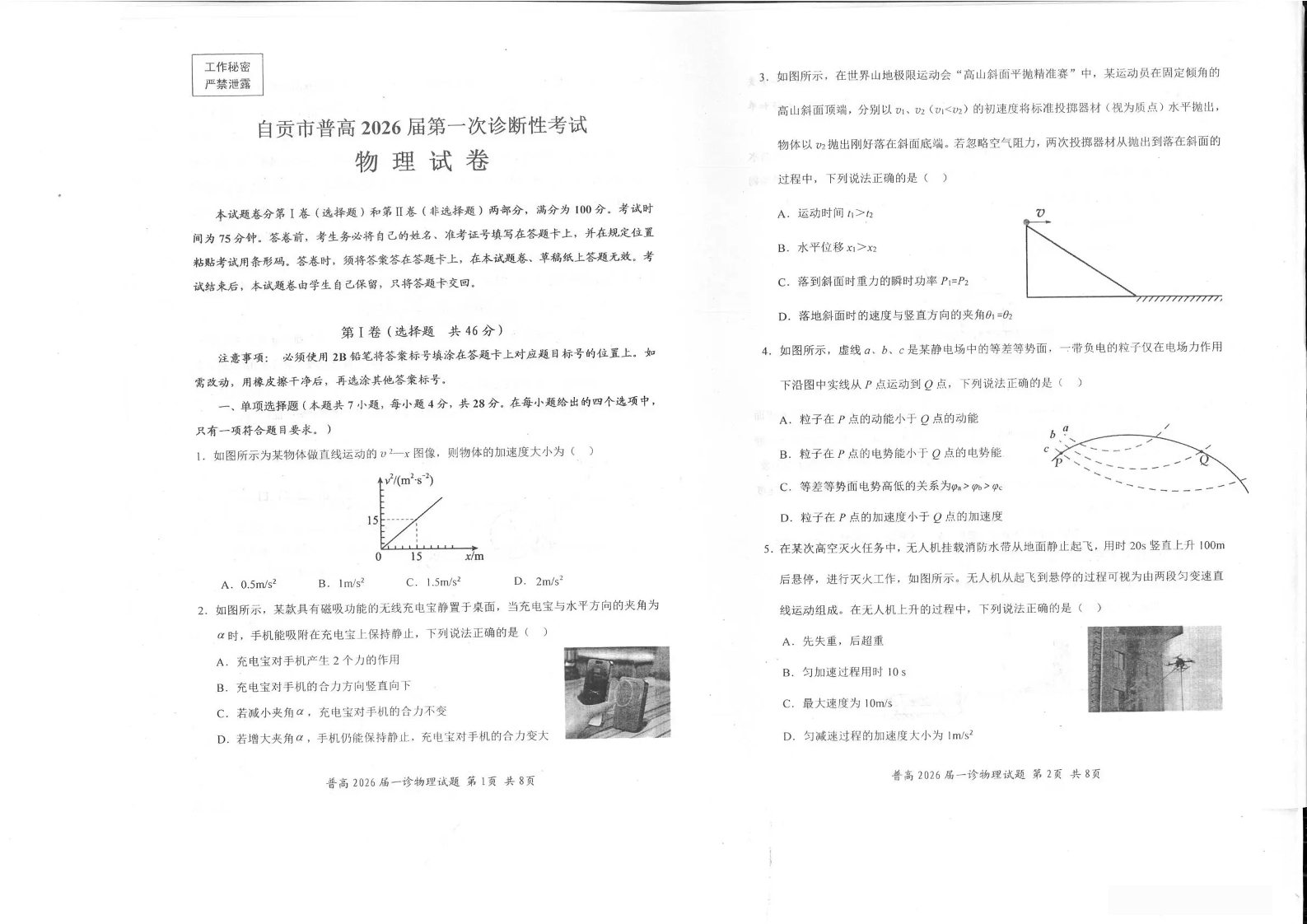 四川省自贡市普高2026届第一次诊断性考试 物理.pdf