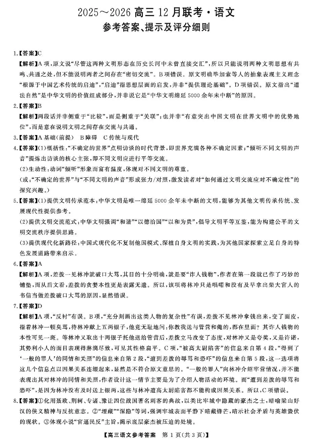 陕西省榆林市2025~2026学年度高三12月联考 语文答案.pdf