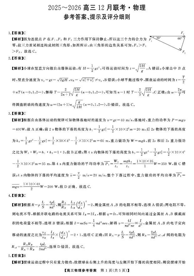 陕西省榆林市2025~2026学年度高三12月联考 物理答案.pdf
