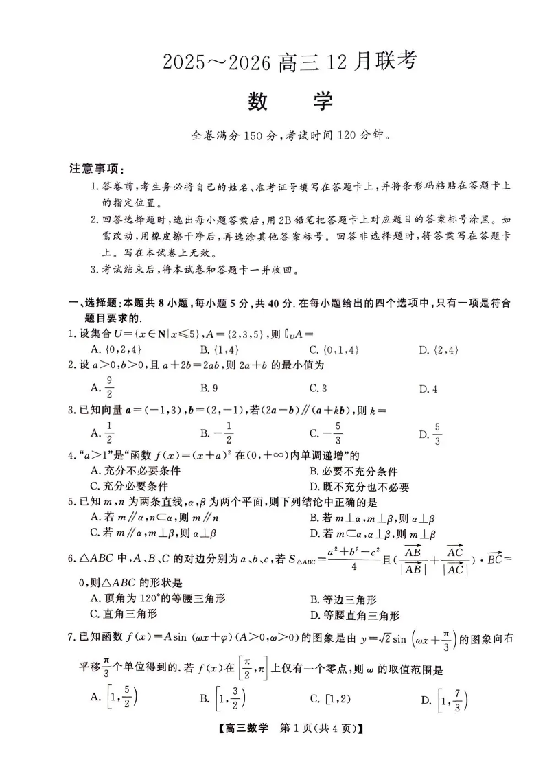 陕西省榆林市2025~2026学年度高三12月联考 数学.pdf