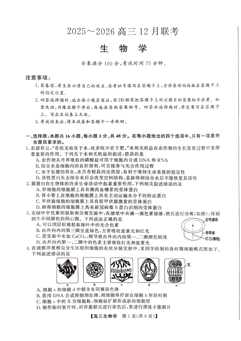 陕西省榆林市2025~2026学年度高三12月联考 生物.pdf