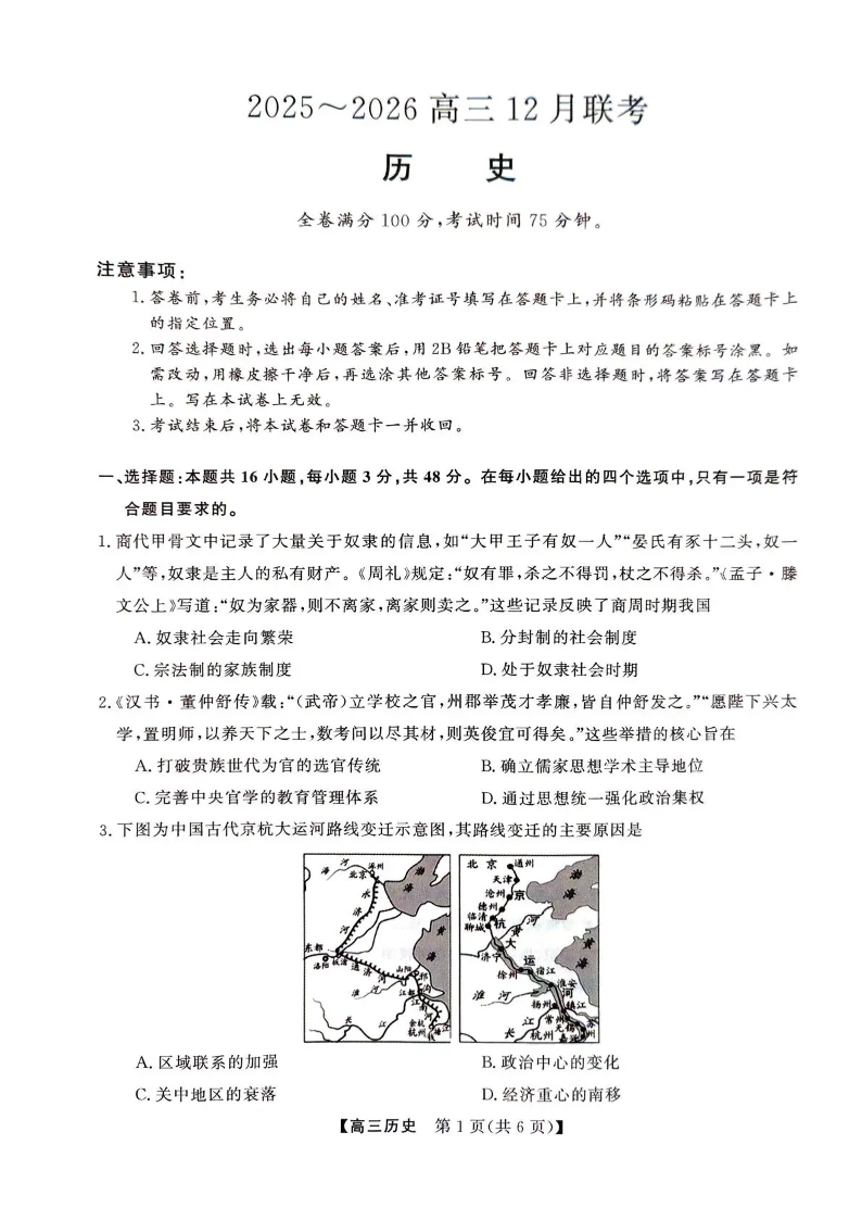 陕西省榆林市2025~2026学年度高三12月联考 历史.pdf