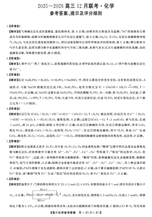 陕西省榆林市2025~2026学年度高三12月联考 化学答案.pdf