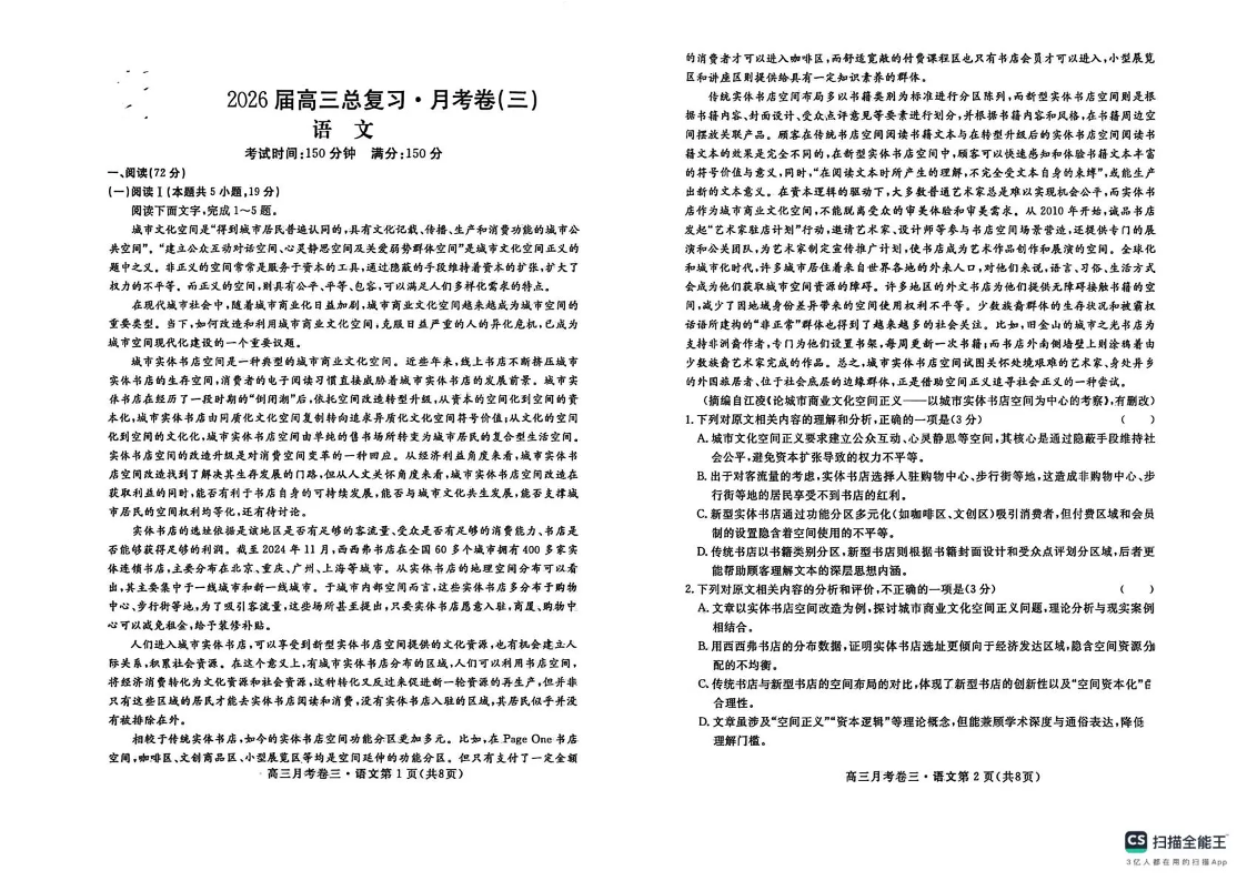 2026届高三总复习·月考卷(三)语文.pdf