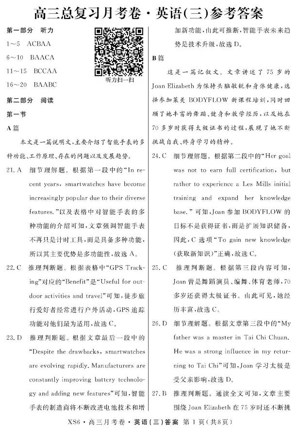 2026届高三总复习·月考卷(三)英语答案.pdf