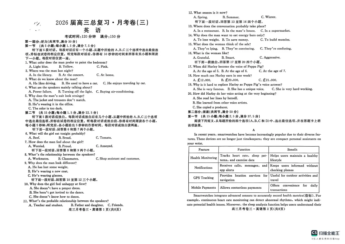 2026届高三总复习·月考卷(三)英语.pdf